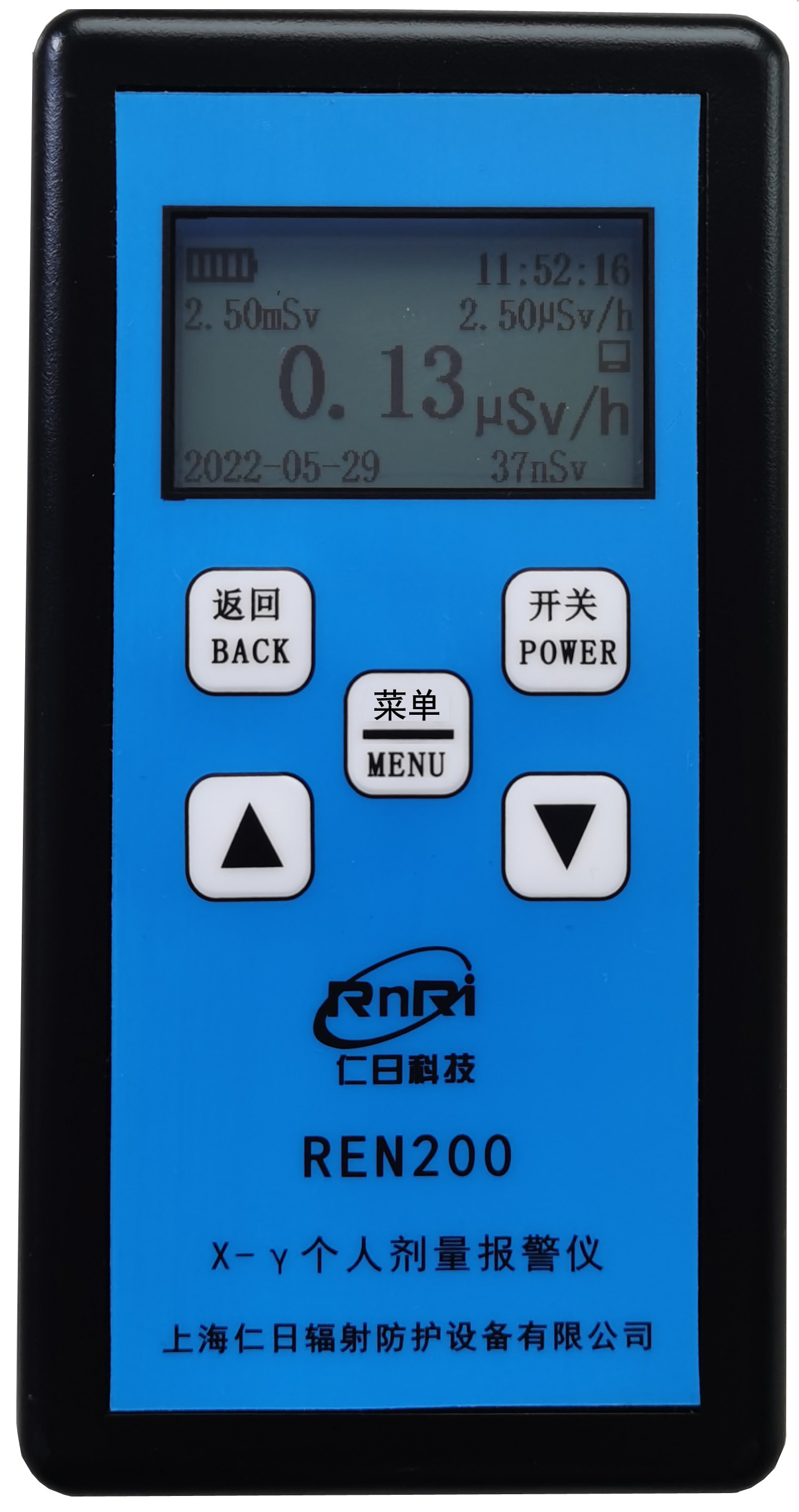 REN200型X、γ個人劑量報警儀(又叫X、γ輻射個人劑量當量HP(10)監測儀)內置高靈敏度蓋格計數管為探測器,主要用來監測各種放射性工作場所的X、γ以及硬β射線的輻射,具有響應快,測量范圍寬的特點。能顯示工作場所的劑量當量率和累積劑量,更換電池時,日期及累積數據能永久保存。可選配RenRiPersonal個人劑量管理軟件,該軟件可存儲多個人的歷史數據,能記錄日累積、月累積、年累積、輻照時長、計算平均劑量率、扣除或不扣除本底輻射,且以文字和圖譜的方式展現數據。廣泛應用于核電站、加速器、鋼鐵、化工、同位素應用、醫院、工業X、γ無損探傷、放射醫療、鈷源治療、γ輻照、放射性實驗室、核設施周圍環境監測等領域中的工作人員進行個人安全防護監測及放射性提示。